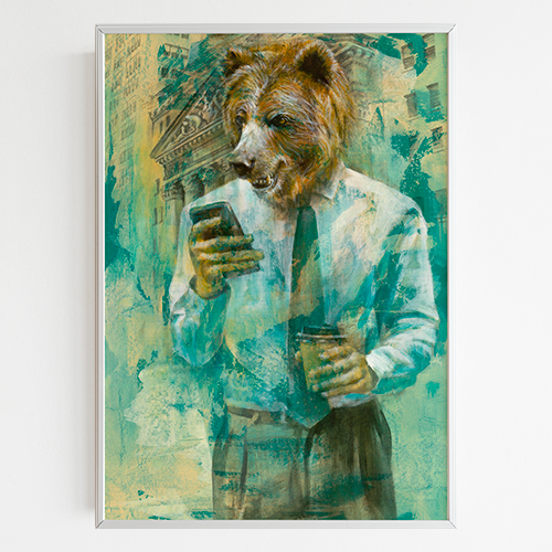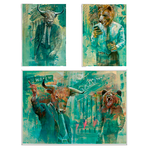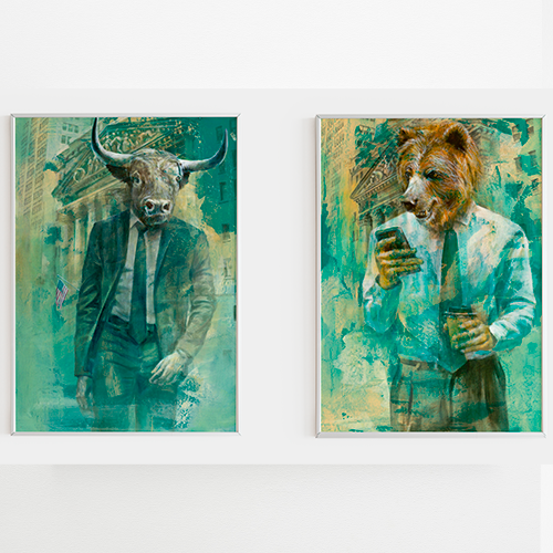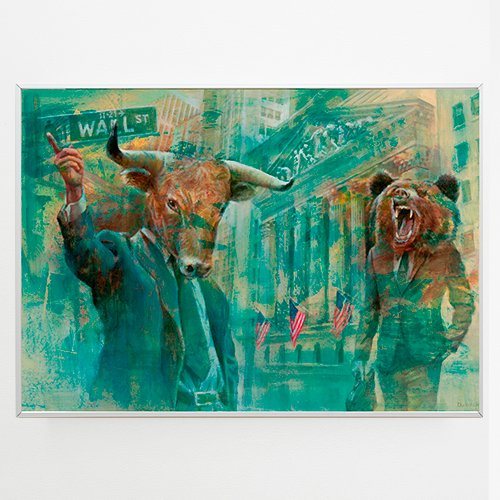 Bull bear wall art. Stock market poster, trader gift, investor gift